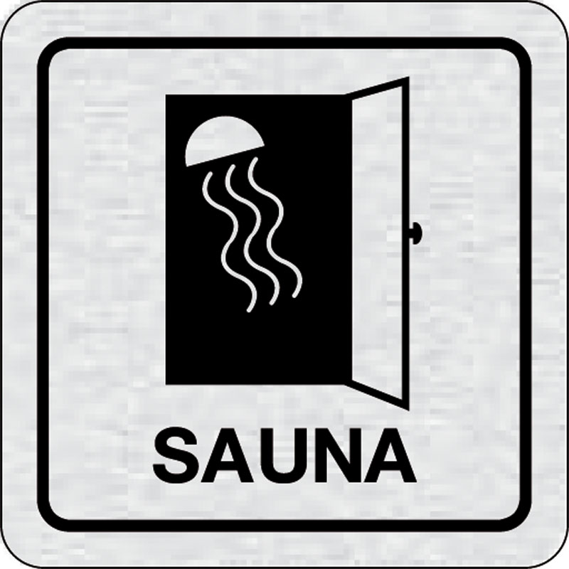 piktogram sauna, rozmer 80x80 mm - piktogram je vyrobený technológiou tepelne chemickej tlače na hliníkovú tabuľku- vďaka špeciálnemu chemickému zloženiu je výsledná tlač odolná proti poškrabaniu- piktogram s rozmerom 80x80 mm je zozadu vybavený samolepia