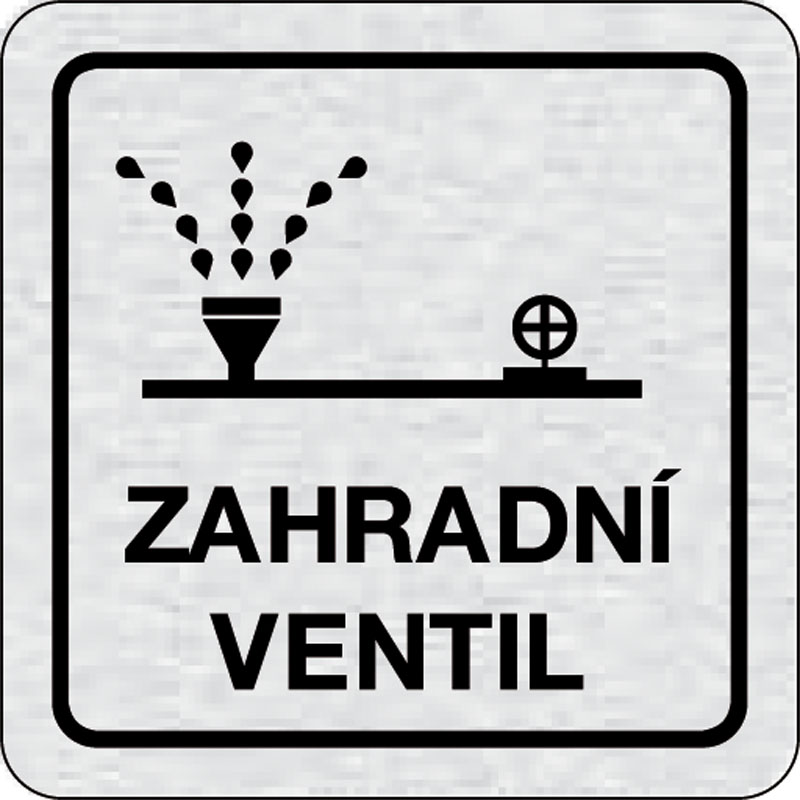 piktogram záhradný ventil, rozmer 80x80 mm - piktogram je vyrobený technológiou tepelne chemickej tlače na hliníkovú tabuľku- vďaka špeciálnemu chemickému zloženiu je výsledná tlač odolná proti poškrabaniu- piktogram s rozmerom 80x80 mm je zozadu vybavený
