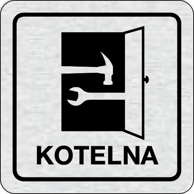 piktogram kotolňa, rozmer 80x80 mm - piktogram je vyrobený technológiou tepelne chemickej tlače na hliníkovú tabuľku- vďaka špeciálnemu chemickému zloženiu je výsledná tlač odolná proti poškrabaniu- piktogram s rozmerom 80x80 mm je zozadu vybavený samolep