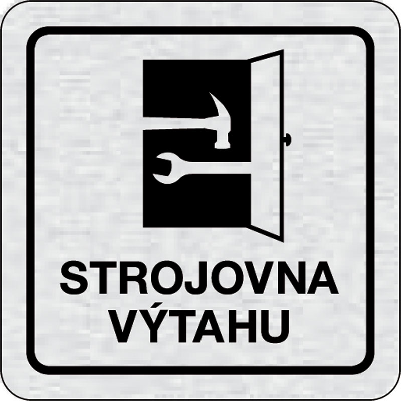 piktogram strojovňa výťahu, rozmer 80x80 mm - piktogram je vyrobený technológiou tepelne chemickej tlače na hliníkovú tabuľku- vďaka špeciálnemu chemickému zloženiu je výsledná tlač odolná proti poškrabaniu- piktogram s rozmerom 80x80 mm je zozadu vybaven