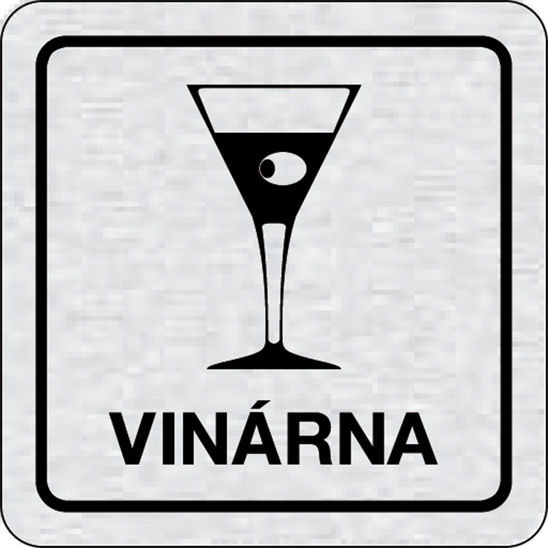 piktogram vináreň, rozmer 80x80 mm - piktogram je vyrobený technológiou tepelne chemickej tlače na hliníkovú tabuľku- vďaka špeciálnemu chemickému zloženiu je výsledná tlač odolná proti poškrabaniu- piktogram s rozmerom 80x80 mm je zozadu vybavený samolep