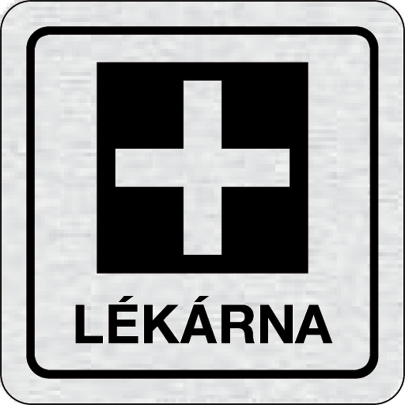 piktogram lekáreň, rozmer 80x80 mm - piktogram je vyrobený technológiou tepelne chemickej tlače na hliníkovú tabuľku- vďaka špeciálnemu chemickému zloženiu je výsledná tlač odolná proti poškrabaniu- piktogram s rozmerom 80x80 mm je zozadu vybavený samolep