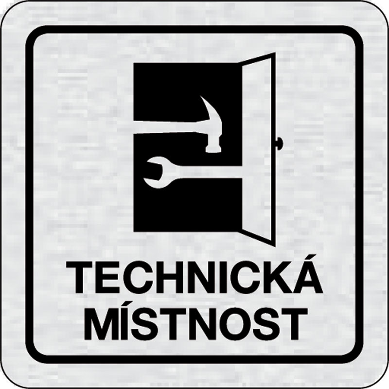 piktogram technická miestnosť, rozmer 80x80 mm - piktogram je vyrobený technológiou tepelne chemickej tlače na hliníkovú tabuľku- vďaka špeciálnemu chemickému zloženiu je výsledná tlač odolná proti poškrabaniu- piktogram s rozmerom 80x80 mm je zozadu vyba