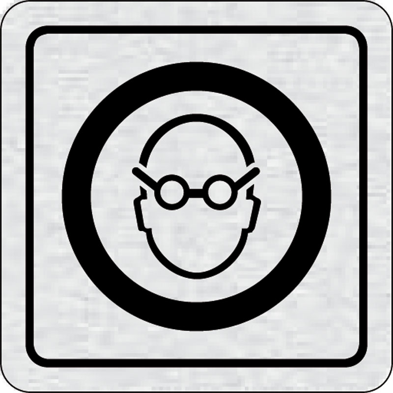 piktogram použi ochranu zraku, rozmer 80x80 mm - piktogram je vyrobený technológiou tepelne chemickej tlače na hliníkovú tabuľku- vďaka špeciálnemu chemickému zloženiu je výsledná tlač odolná proti poškrabaniu- piktogram s rozmerom 80x80 mm je zozadu vyba