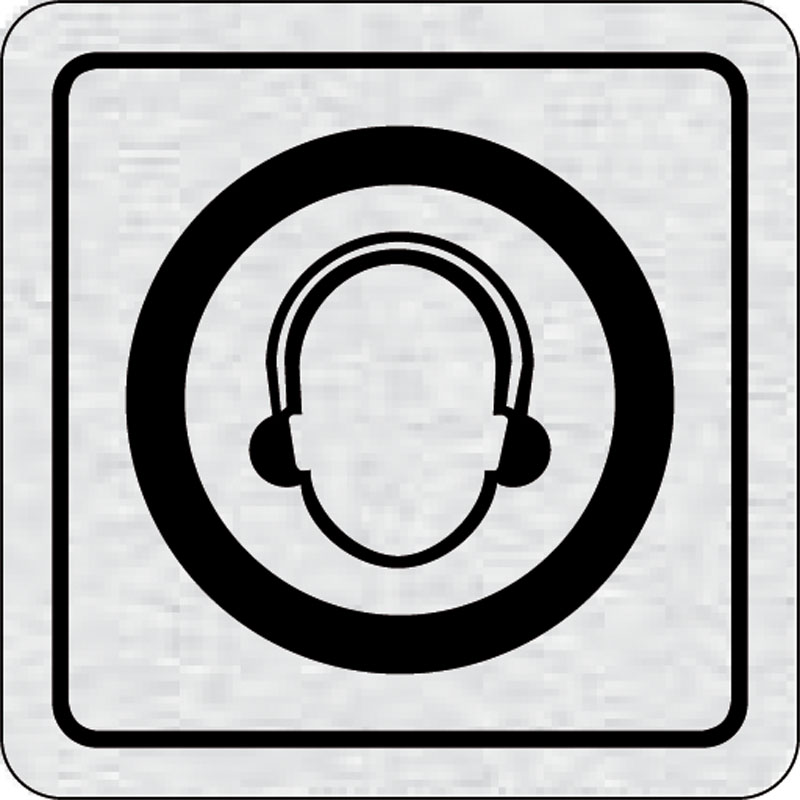 piktogram použi ochranu sluchu, rozmer 80x80 mm - piktogram je vyrobený technológiou tepelne chemickej tlače na hliníkovú tabuľku- vďaka špeciálnemu chemickému zloženiu je výsledná tlač odolná proti poškrabaniu- piktogram s rozmerom 80x80 mm je zozadu vyb