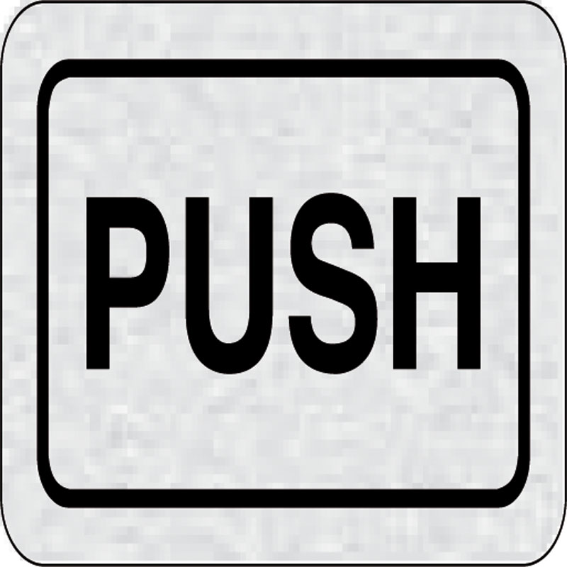 piktogram push, rozmer 80x50 mm - značenie smeru je vyrobené technológiou tepelne chemickej tlače na hliníkovú tabuľku - vďaka špeciálnemu chemickému zloženiu je výsledná tlač odolná proti poškrabaniu - značenie s rozmerom 80x50 mm je zozadu vybavený samo
