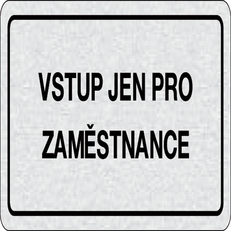 piktogram vstup len pre zamestnancov, rozmer 160x80 mm - piktogram je vyrobený technológiou tepelne chemickej tlače na hliníkovú tabuľku - vďaka špeciálnemu chemickému zloženiu je výsledná tlač odolná proti poškrabaniu - piktogram s rozmerom 160x80 mm je