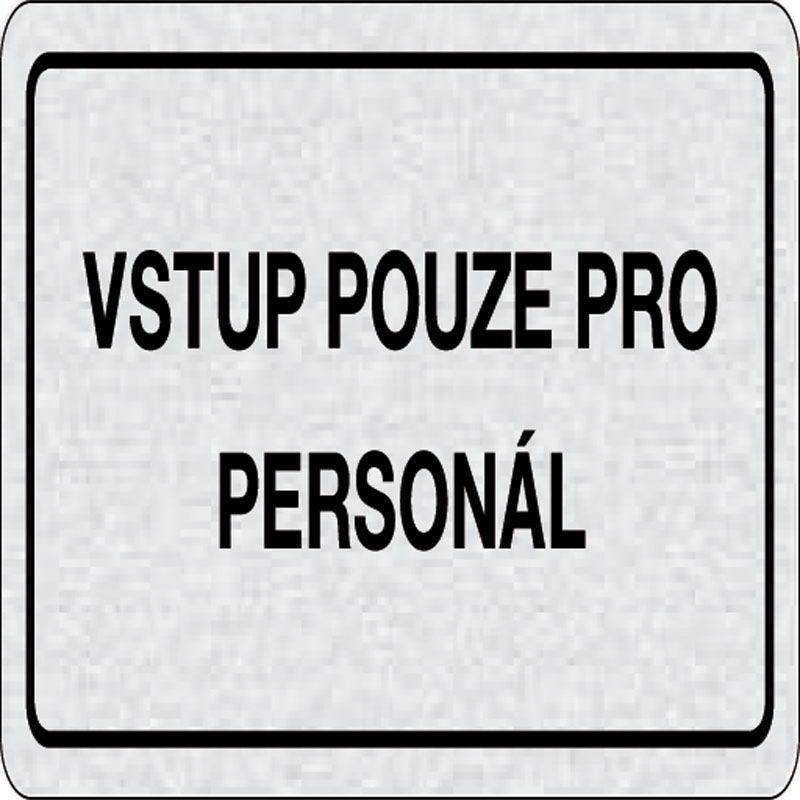 piktogram vstup len pre personál, rozmer 160x80 mm - piktogram je vyrobený technológiou tepelne chemickej tlače na hliníkovú tabuľku - vďaka špeciálnemu chemickému zloženiu je výsledná tlač odolná proti poškrabaniu - piktogram s rozmerom 160x80 mm je zoza
