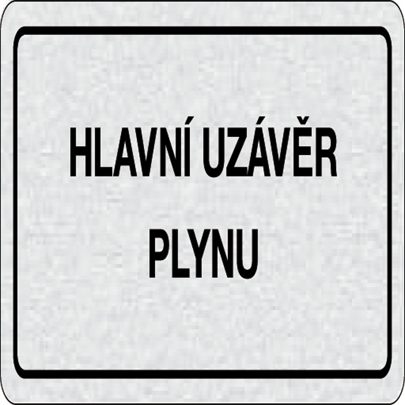 piktogram hlavný uzáver plynu, rozmer 160x80 mm - piktogram je vyrobený technológiou tepelne chemickej tlače na hliníkovú tabuľku - vďaka špeciálnemu chemickému zloženiu je výsledná tlač odolná proti poškrabaniu - piktogram s rozmerom 160x80 mm je zozadu