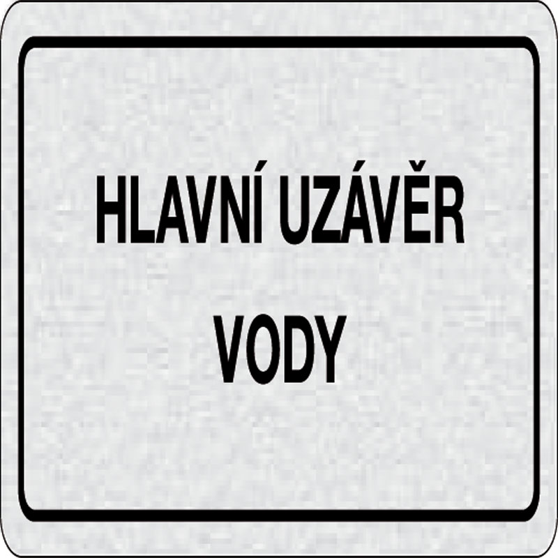 piktogram hlavný uzáver vody, rozmer 160x80 mm - piktogram je vyrobený technológiou tepelne chemickej tlače na hliníkovú tabuľku - vďaka špeciálnemu chemickému zloženiu je výsledná tlač odolná proti poškrabaniu - piktogram s rozmerom 160x80 mm je zozadu v