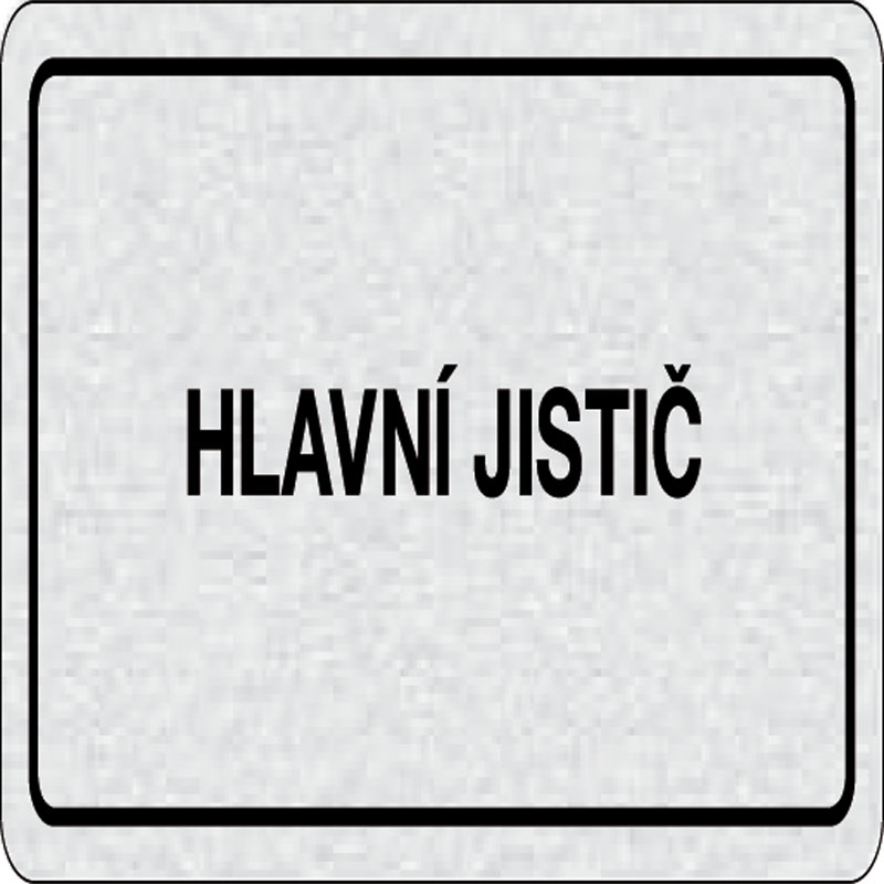 piktogram hlavný istič, rozmer 160x80 mm - piktogram je vyrobený technológiou tepelne chemickej tlače na hliníkovú tabuľku - vďaka špeciálnemu chemickému zloženiu je výsledná tlač odolná proti poškrabaniu - piktogram s rozmerom 160x80 mm je zozadu vybaven