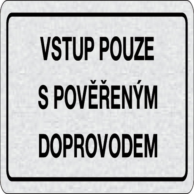 piktogram vstup iba s povereným sprievodom, rozmer 160x80 mm - piktogram je vyrobený technológiou tepelne chemickej tlače na hliníkovú tabuľku - vďaka špeciálnemu chemickému zloženiu je výsledná tlač odolná proti poškrabaniu - piktogram s rozmerom 160x80