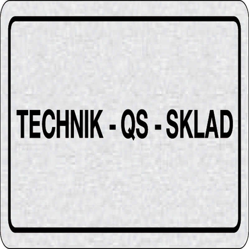 piktogram technik-qs-sklad, rozmer 160x80 mm - piktogram je vyrobený technológiou tepelne chemickej tlače na hliníkovú tabuľku - vďaka špeciálnemu chemickému zloženiu je výsledná tlač odolná proti poškrabaniu - piktogram s rozmerom 160x80 mm je zozadu vyb