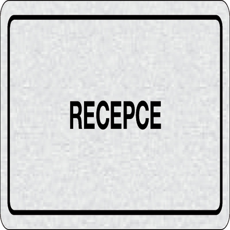 piktogram recepcia, rozmer 160x80 mm - piktogram je vyrobený technológiou tepelne chemickej tlače na hliníkovú tabuľku - vďaka špeciálnemu chemickému zloženiu je výsledná tlač odolná proti poškrabaniu - piktogram s rozmerom 160x80 mm je zozadu vybavený sa