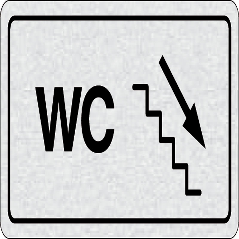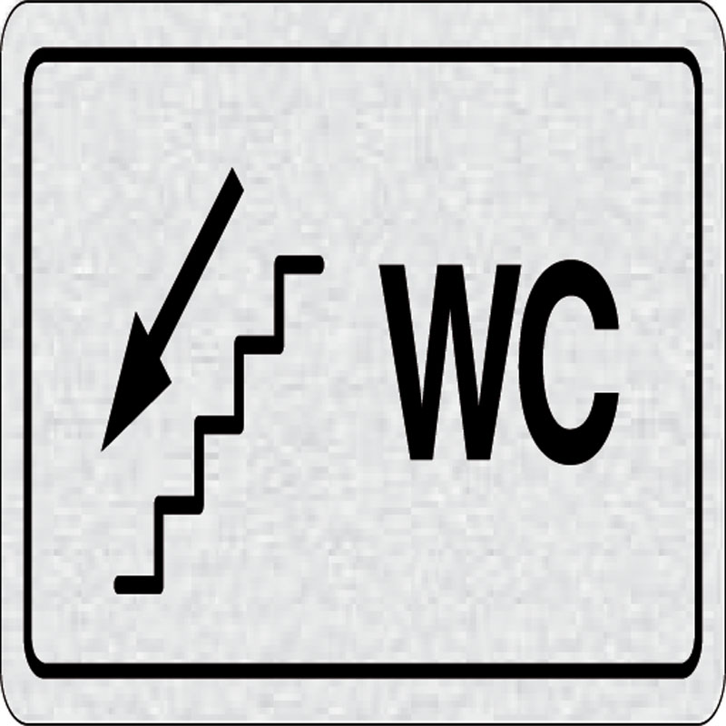 piktogram WC doprava po schodoch dole, rozmer 160x80 mm - piktogram je vyrobený technológiou tepelne chemickej tlače na hliníkovú tabuľku - vďaka špeciálnemu chemickému zloženiu je výsledná tlač odolná proti poškrabaniu - piktogram s rozmerom 160x80 mm je