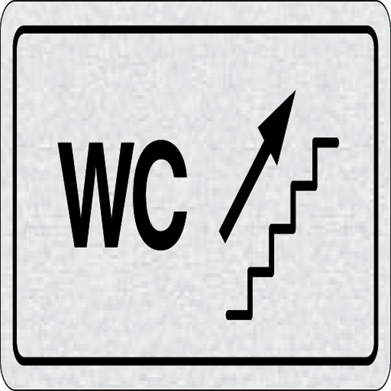 piktogram WC doprava po schodoch hore, rozmer 160x80 mm - piktogram je vyrobený technológiou tepelne chemickej tlače na hliníkovú tabuľku - vďaka špeciálnemu chemickému zloženiu je výsledná tlač odolná proti poškrabaniu - piktogram s rozmerom 160x80 mm je