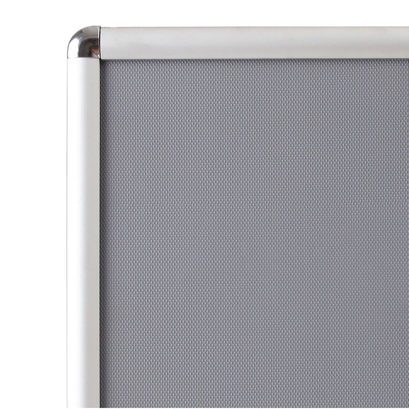 plagátový rám s guľatými rohmi, formát A3- hliníkový rám- zaklapovací systém umožňuje rýchlu a jednoduchú výmenu plagátu- antireflexná krycia fólia na ochranu plagátu- možno umiestniť ako na výšku, tak aj na šírku- montážny materiál súčasťou baleniaRoz