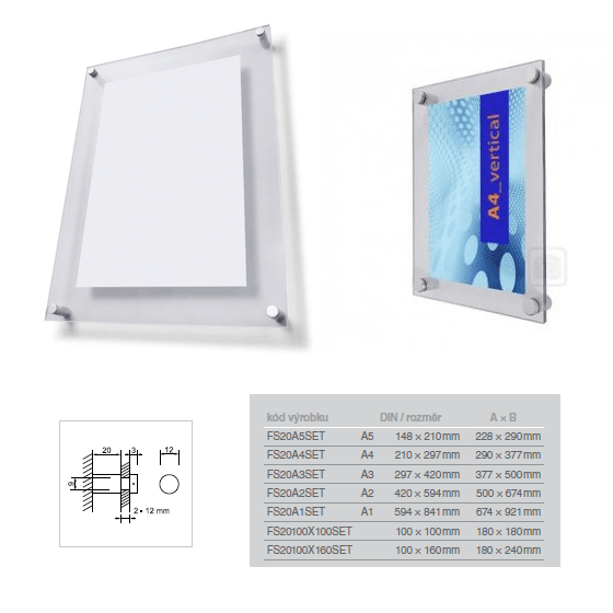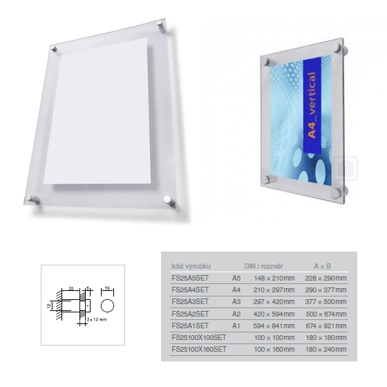 Ide o jednoduchú a designovú časť vašich informačných systémov. Set, ktorý bude obsahovať kotviace úchyty do steny + 2 x plexisklovú tabuľku. Motív, ktorý potrebujete prezentovať sa vloží medzi plexi