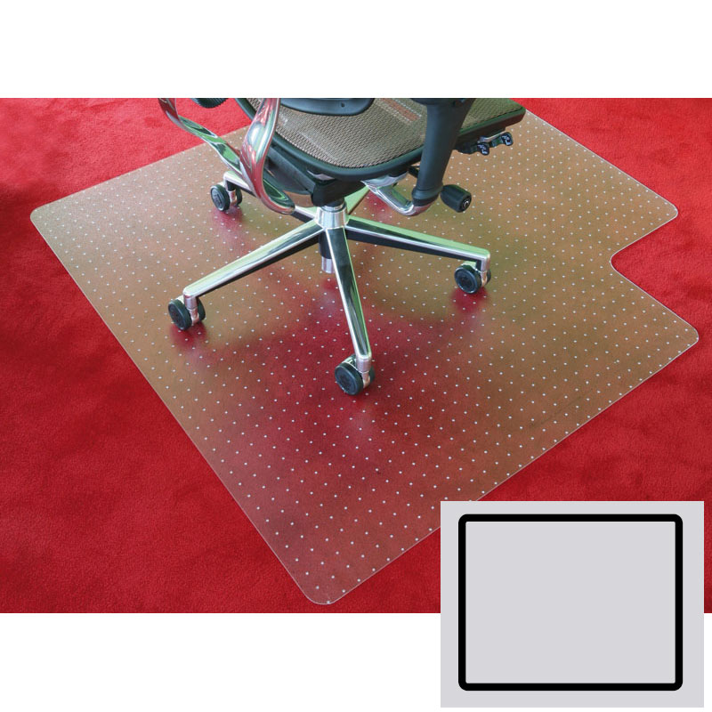 polykarbonátová podložka s výrezom na koberce, rozmery 1500x1200 mm - podložka je vyrobená z tvrdeného a odolného plastu - farba podložiek je transparentná - spodná strana podložky má nopky, ktoré zaisťujú fixáciu na mieste a zabraňujú posúvaniu - nopky s